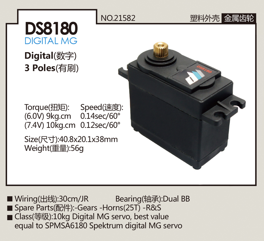 - Torque: 9.0kg/10kg cm @ 6V / 7,4V