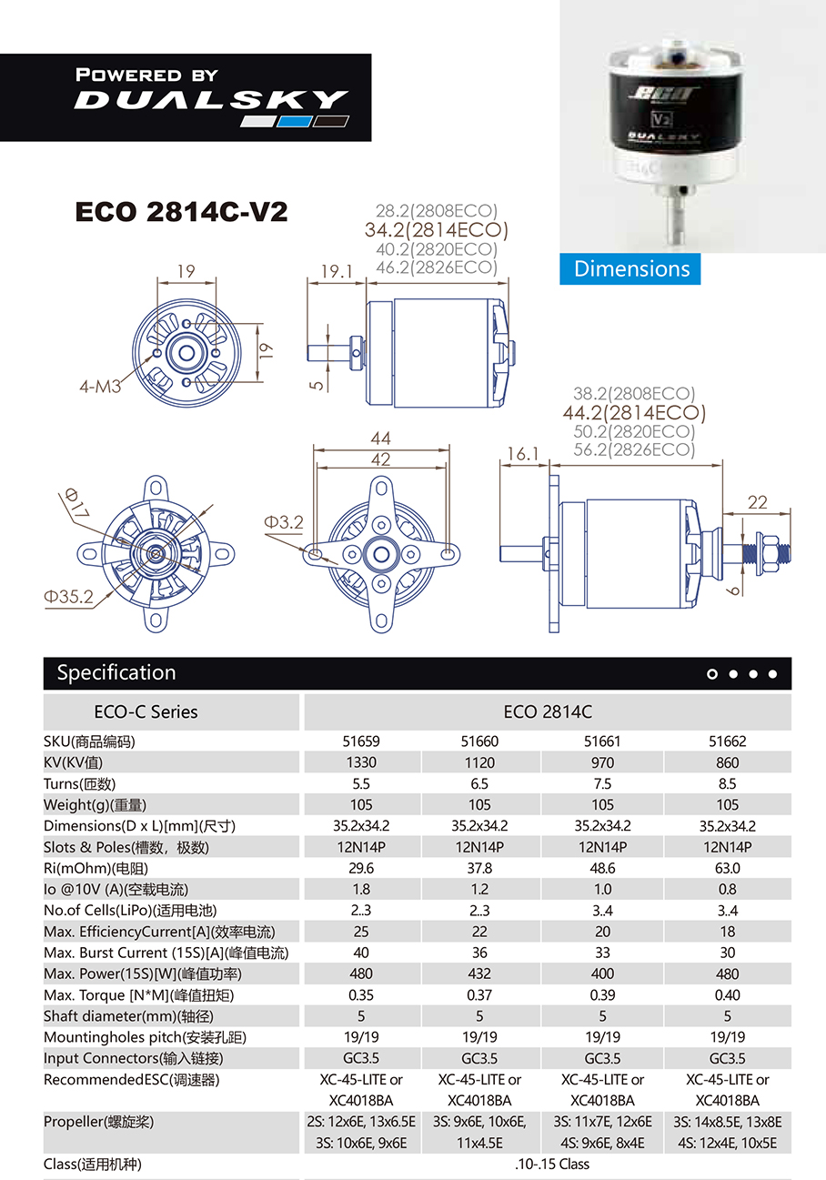Dualsky ECO series brushless outrunner motors cover the RC power market which is less than 900W.