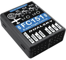 DualSky FC151 on pieni, mutta monipuolinen 6-akselinen gyro. Uusi versio suositusta FC150 gyrosta. Se sopii normaalien lennokkien lisäksi delta siipisille ja V-pyrstöisille koneille. Kolme eri lentotilaa: Normaali, kehittynyt vakautus (siivekkeet ja korkeusperäsin), 3D vakautus (siivekkeet ja peräsimet). Tukee myös S.Bus ja HV servoja. Sopii kaiken kokoisille lennokeille.