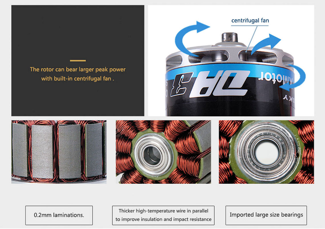 - The rotor can bear larger peak power with built-in centrifugal fan .