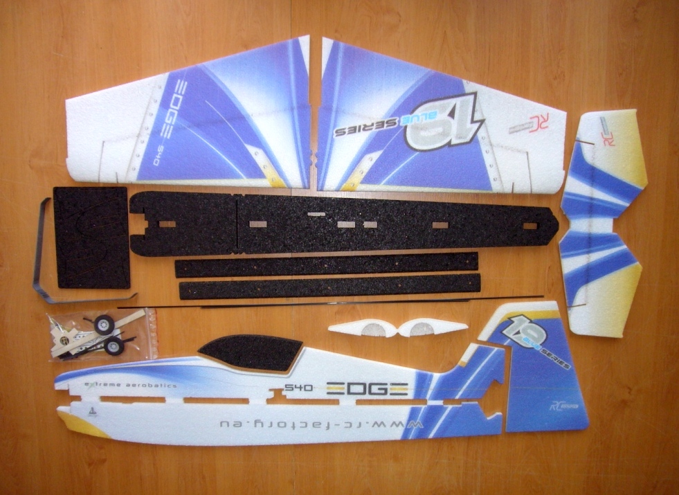 The next level in 2013 giving a fresh all new ground up design with the RcFactory 39” EPP Edge 540 model. Those that are familiar with the previous 39” models will appreciate the new hardware and construction including rear tail control push rod assemblies with adjustablity and new epp bracing for easy assembly. While creating a new ground up airframe the duel aileron servos have now been re-located which creates a plush/clean look. The over all flight envelope has increased greatly giving a sense of unreal control authority and increased roll rate was also achieved with the addition of outer counter balance tabs. This model was designed for the pilot wanting to learn the “next step” and also those who choose a balsa 3d model alternative.