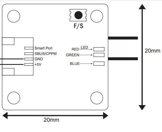 - S-BUS/CPPM output (BLUE LED stay lit indicates XSR-M in S-BUS mode, otherwise in CPPM mode)