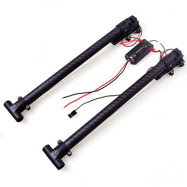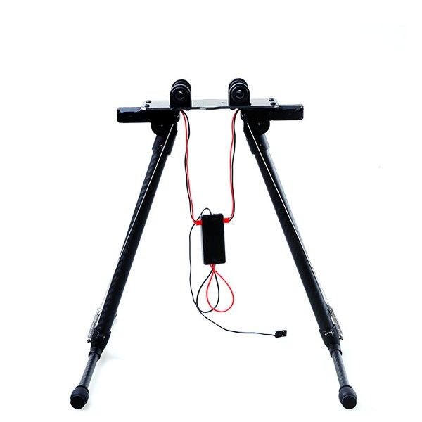 The retractable landing gear is designed for the multicopter Frame in order to provide a better perspective inaerial-filming/photography work.By using a 2-position switch channel of the R/C transmitter,you can control the landing gear to retract remotely.The retractable landing gear will not block the view of the camera lens,making smooth shooting in all directions possible.